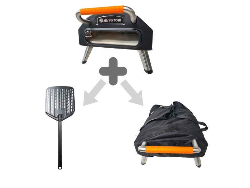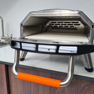Accessories: pizza stone, anodised aluminium pizza peel (30 cm wide blade + 40 cm long handle), carrying bag;