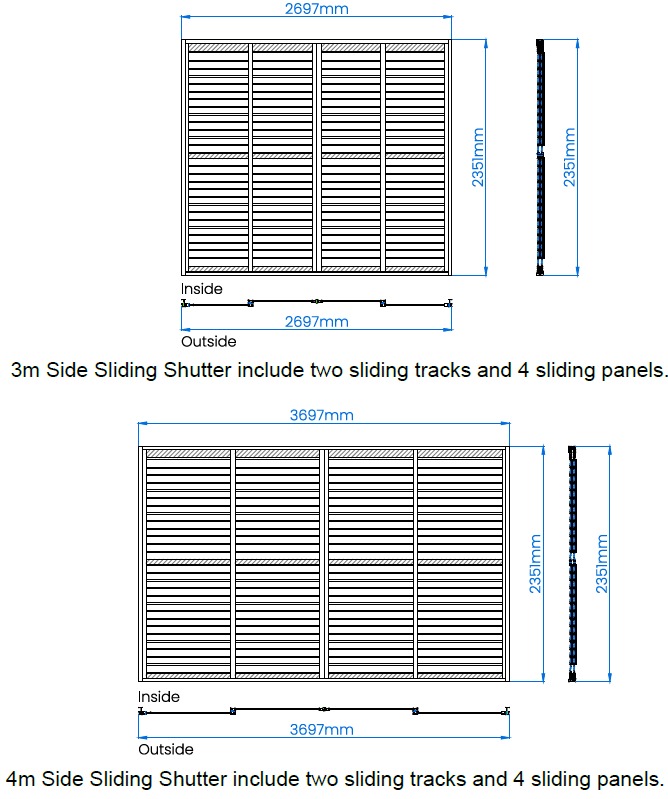 Klizna lamelna stijena izrađena je od visokokvalitetne aluminijske legure 6063 T5, koja osigurava iznimnu čvrstoću, otpornost na koroziju i stabilnost konstrukcije. Površina je zaštićena prašnim premazom Akzo Nobel, koji jamči dugotrajnu postojanost boje te zaštitu od UV zraka, vlage i mehaničkih utjecaja.