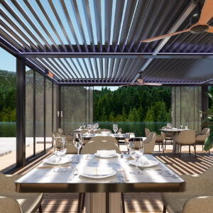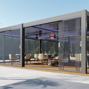 Vrata se izrađuju po narudžbi, s prilagodbom dimenzija, broja vodilica i panela, što omogućuje savršenu integraciju u pergole, terase, lođe ili moderne fasade. Dostupne su različite konfiguracije (2, 3 ili 4 vodilice) s mogućnošću do 8 kliznih panela, što omogućuje široke otvore bez prekida pogleda.