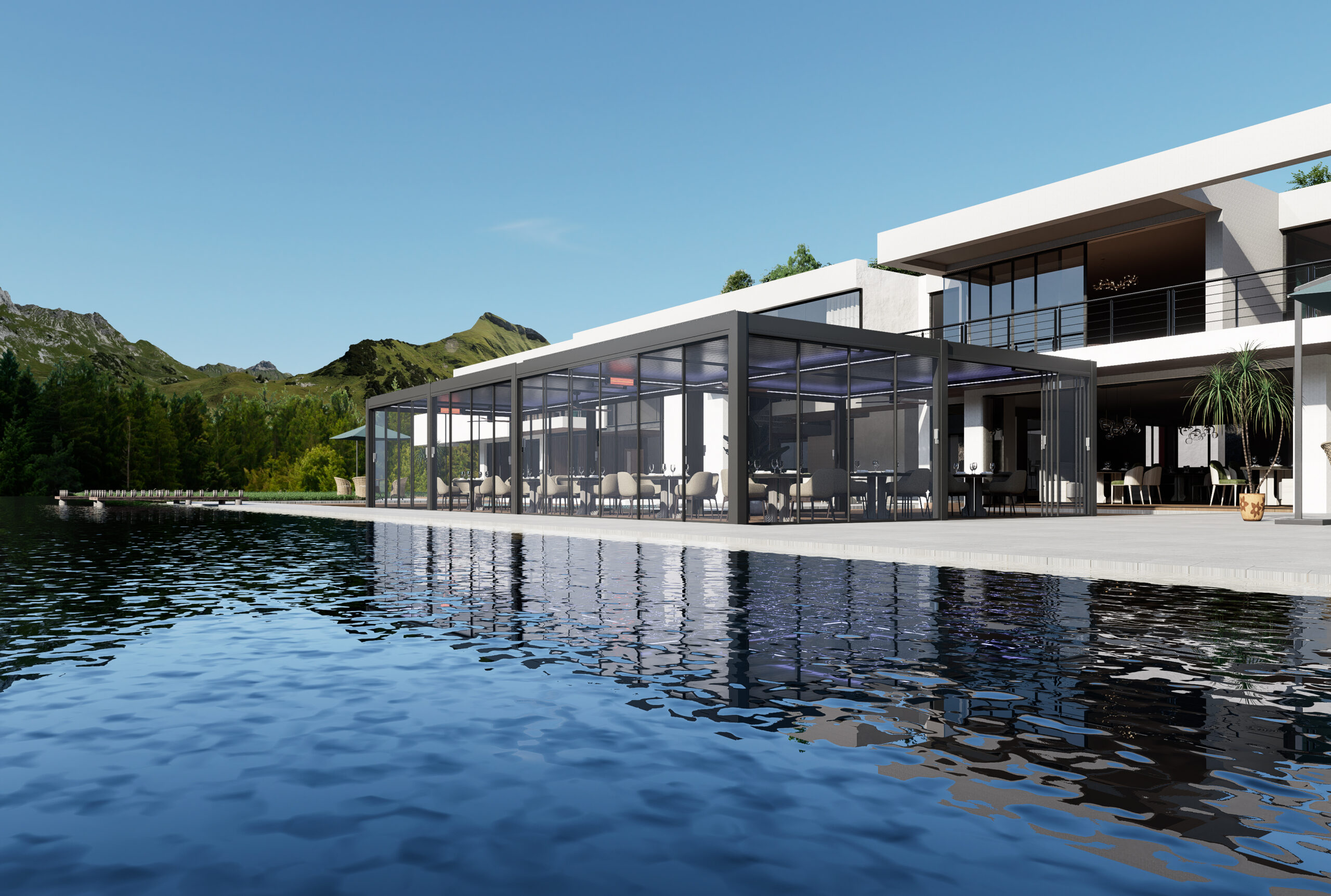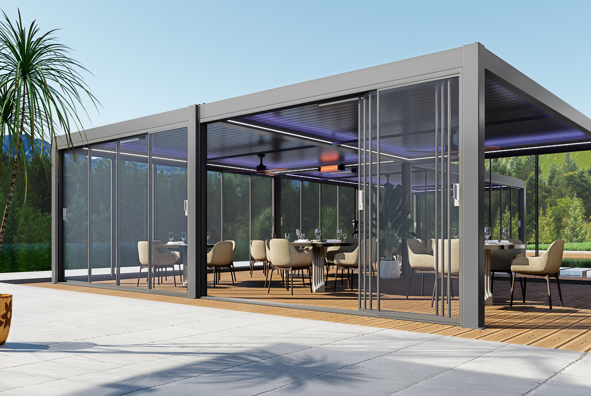 Staklena klizna vrata Bellano S25 PRO savršeno su rješenje za stvaranje ostakljenih prostora koji zadržavaju povezanost s vanjskim okruženjem, štite od vremenskih uvjeta i istovremeno pružaju svjetlost, otvorenost i eleganciju.