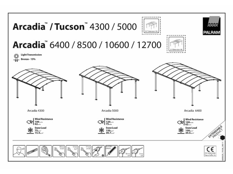 Podaljšek nastreška Arcadia za 700mm. V kolikor imate že imate nadstrešek Arcadia in menite, da je potrebno nadstrešek povečati, to lahko naredite z Arcadia ext. 700. Vaš nadstrešek bo daljši za 0,7 m.
